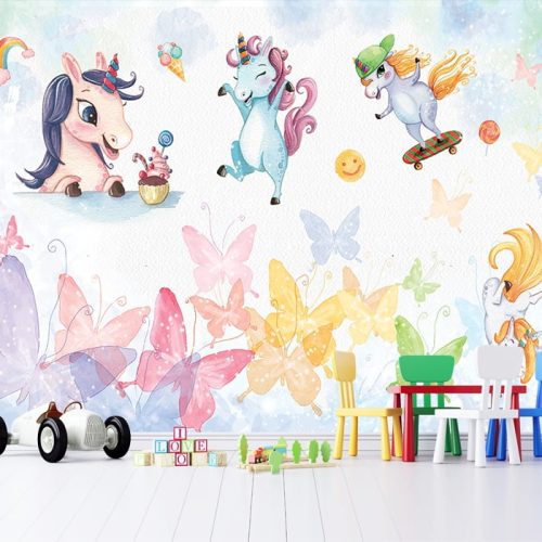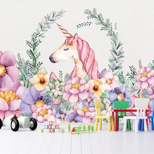 Unicorn Atlı Çiçekli Duvar Kağıdı