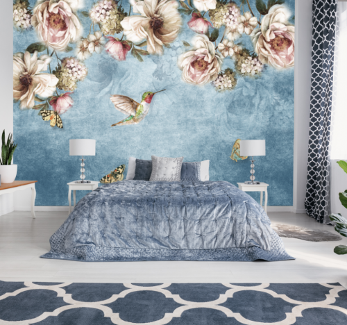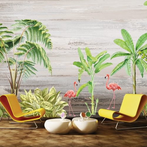 Tropikal Kuş ve Çicekli Duvar Kağıdı
