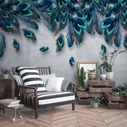 Mavi Desen Üzerinde Daldaki Kuşlar 3D Duvar Kağıdı