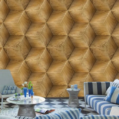 3D Tahta Görünümlü Geometrik Duvar Kağıdı