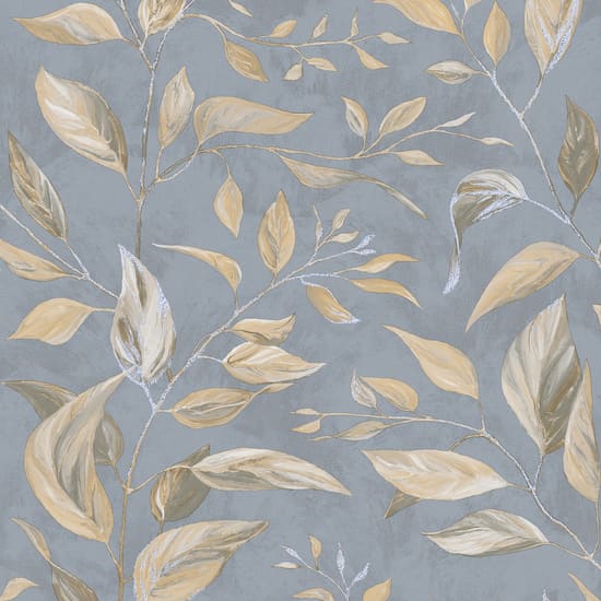 Antrasit Altın Yaprak Desenli Duvar Kağıdı ile 16m² Geniş Kaplama