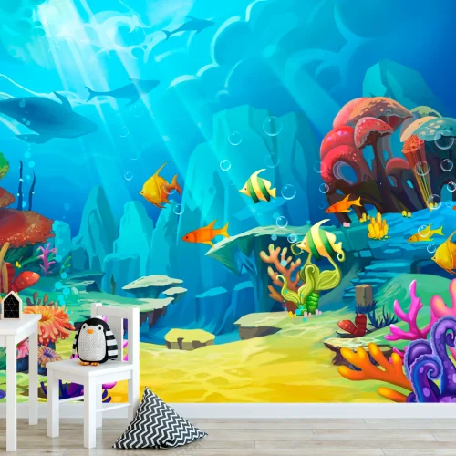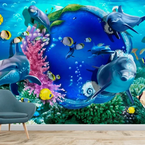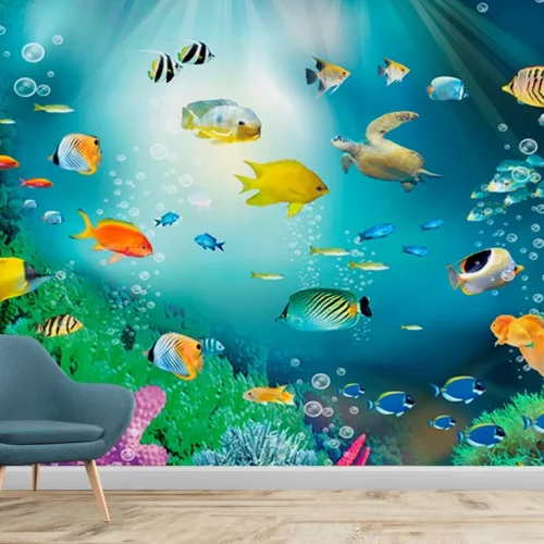 3D Akvaryum Görünümlü Duvar Kağıdı