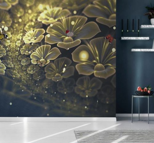 Siyah Çicekli Duvar 3D Duvar Kağıdı