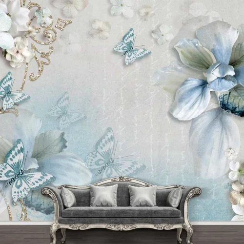 İnci Kelebekli 3D Duvar Kağıdı