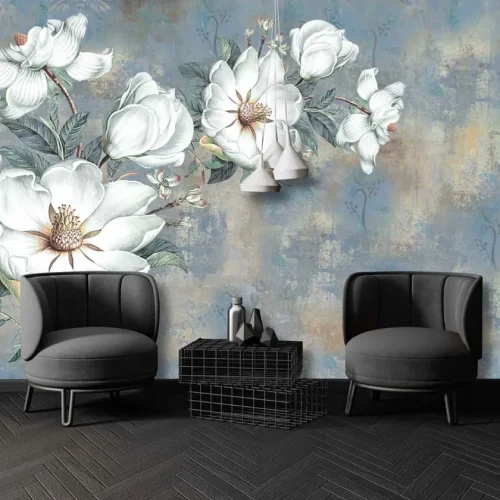 İnci Desenli Çicekler Duvar Kağıdı