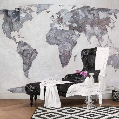 3D Beton Görünümlü Dünya Haritası