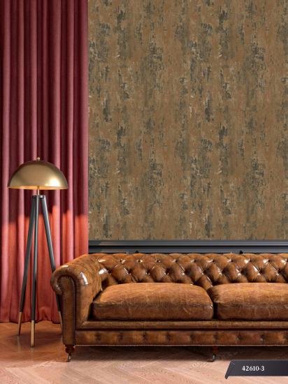 GMZ Icon 42610-3 duvar kağıdı, eskitme dokulu modern tasarımı ve kahverengi tonlarının sıcak görünümü sayesinde yaşam alanlarında karakterli ve şık bir atmosfer oluşturur. Doğal taş ve beton dokusunu andıran yüzey yapısı ile duvarlarda güçlü ve estetik bir dekoratif etki yaratır.