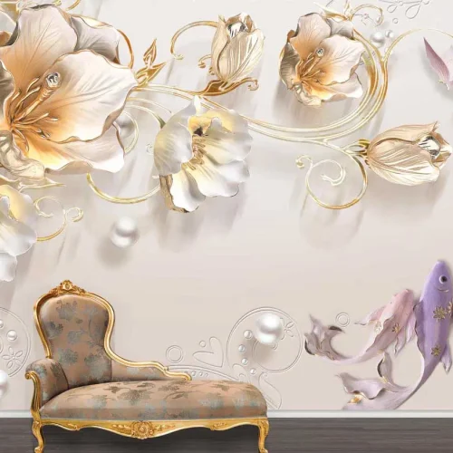 Ana Sayfa 3D Duvar Posteri Lüx Duvar Kağıdı İnci Desenli 3D Duvar Kağıdı