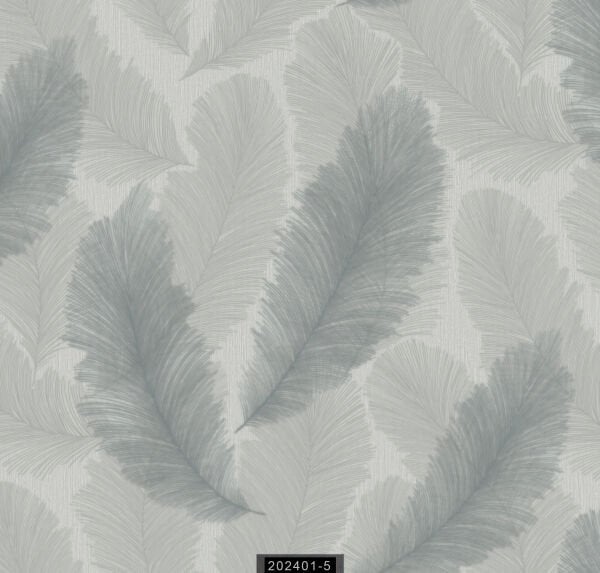 Revana Kahkashan 202201-5 Duvar Kağıdı – Gri Yaprak Desenli Modern 16 m²